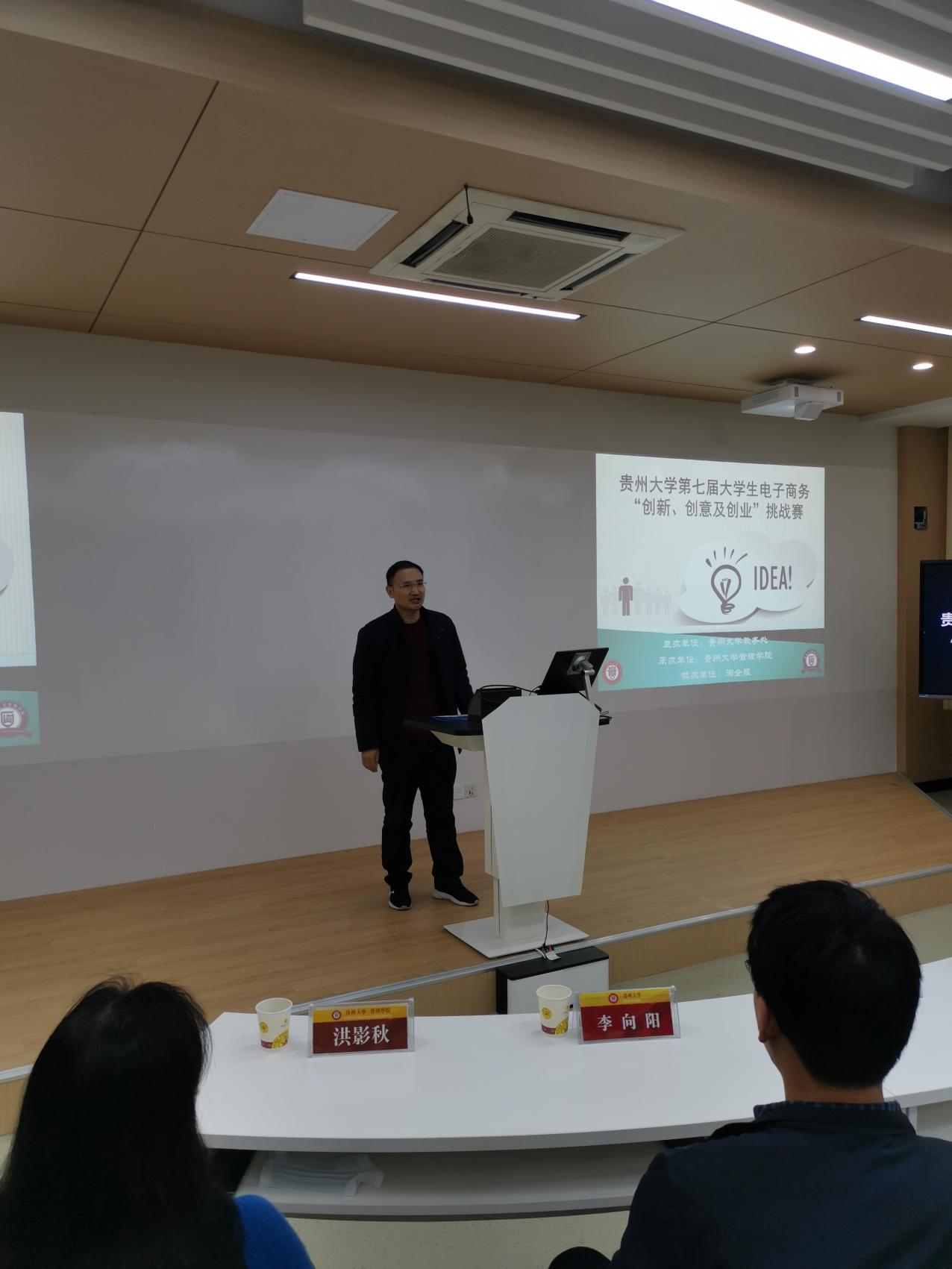 为激发当代大学生自主创业的热情,培养和提升大学生创新意识、创业精神和能力,促进实现以创业带动就业,以实践深化理论的培育目标。由贵州大学教务处主办,乐鱼(中国)承办,淘企服协办的贵州大学第七届大学生电子商务“创新、创意及创业”挑战赛,于2022年3月25日9:00在管理学院101教室顺利举行。