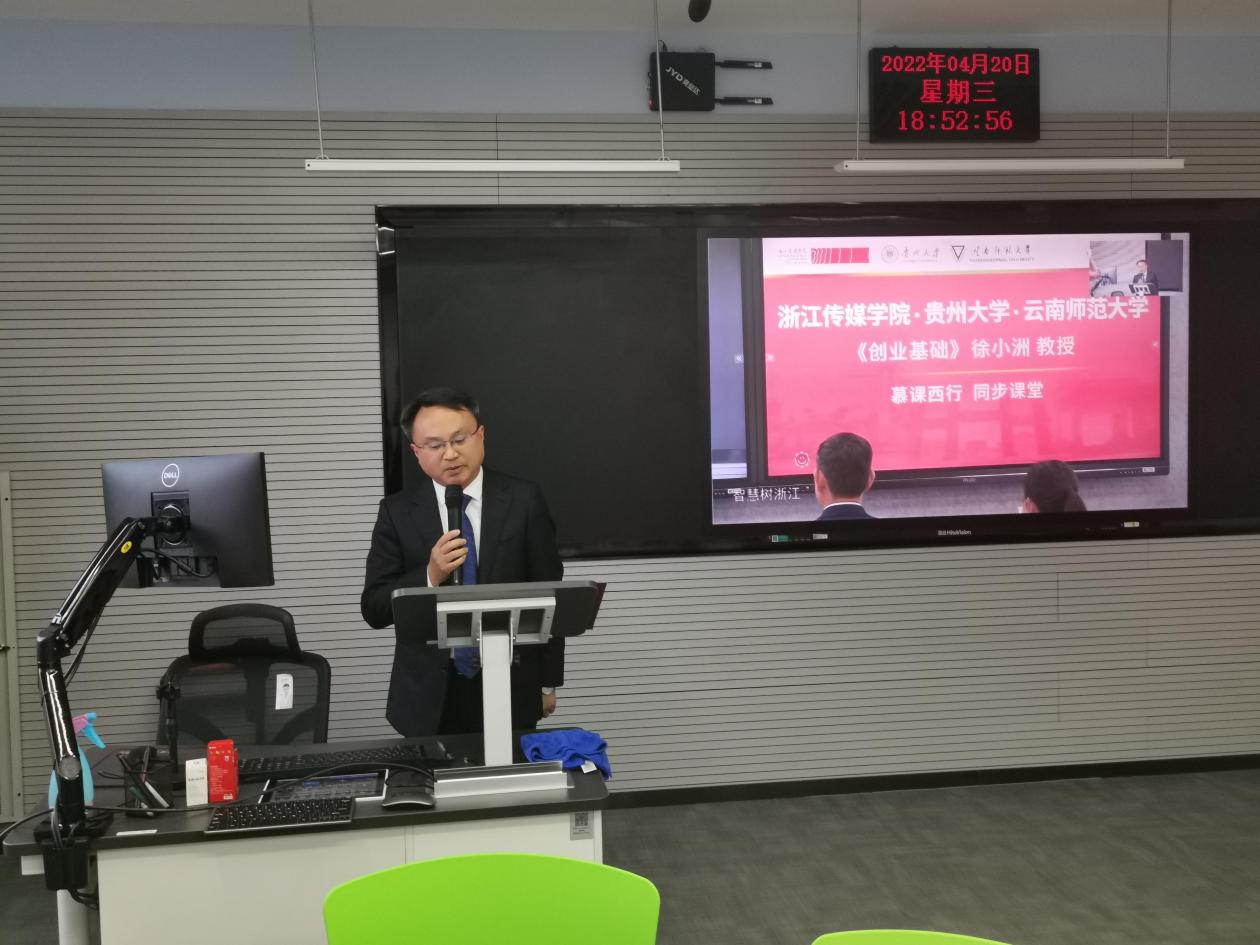 贵州大学党委委员,管理学院院长李烨教授、管理学院副院长宋山梅教授参加了本次活动的启动仪式。启动仪式上,浙江传媒学院校长徐小洲教授提出“慕课是互联网发展的产物,它改变了优质教育资源的传播方式,为中国高等教育的发展带来了重大机遇。希望通过此次同步课堂活动,能够增强三校校师生间的互动学习,大胆尝试,为人才培养和学科建设作出贡献。”乐鱼手机网页版登录入口李烨教授表示“本次《创业管理》“慕课西行”项目给我们提供了一次有益且大胆的探索,为我校乐鱼手机网页版登录入口教学改革工作开创了跨校合作的新模式,期待未来有更多的机会,在更多的课程领域打开合作之门,实现更多优质教学资源共享,加深三校的多领域交流合作,让所有人都能享受到最美好、最高质量、最公平的教育。”