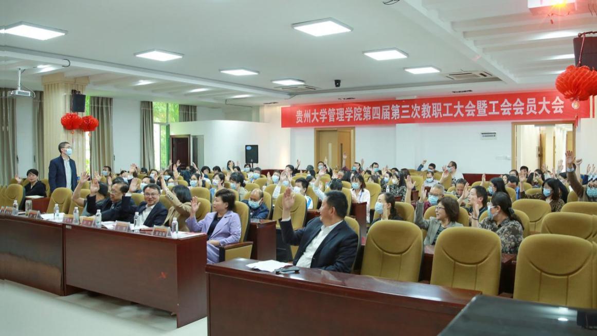 4月26日中午13点,管理学院第四届第三次教职工大会暨工会会员大会在致远楼三楼报告厅举行。学院领导班子出席会议,分工会委员及全体教职工参加会议。会议由院党委副书记、分工会主席洪影秋主持。
