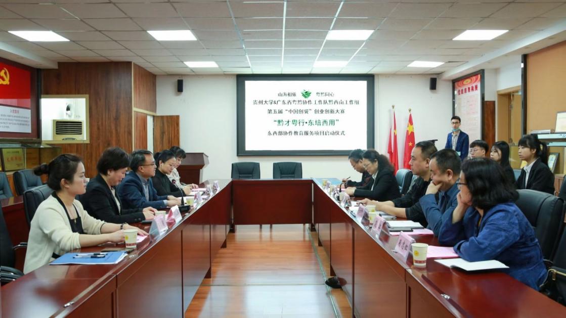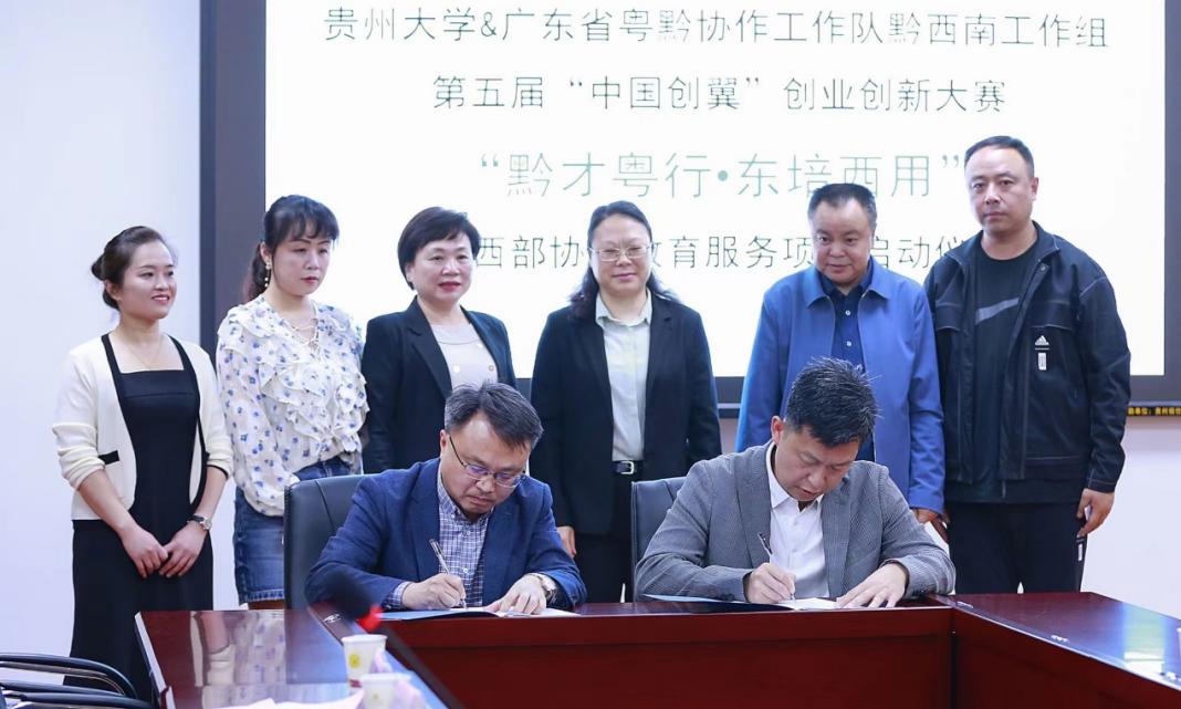 在与会人员的见证下,李烨、潘智同志分别代表贵州大学和粤黔协作工作队签约“黔才粤行﹒东培西用”东西部协作教育服务项目,本次项目在各方美好期许中正式启动。