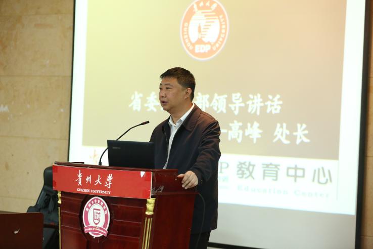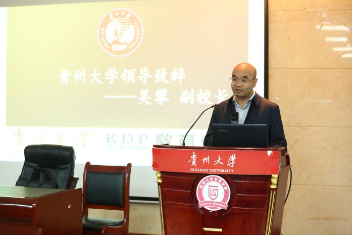贵州大学副校长吴攀,贵州省委组织部党员教育中心教育处处长高峰,贵州大学党委组织部副部长张瑞良,贵州大学对外合作处副处长、贵州大学教育培训管理工作专班负责人付芳,乐鱼(中国)党委书记王秀峰,乐鱼(中国)院长李烨,乐鱼(中国)副院长宋山梅,贵州大学EDP教育中心主任张勇出席本次培训开班式。