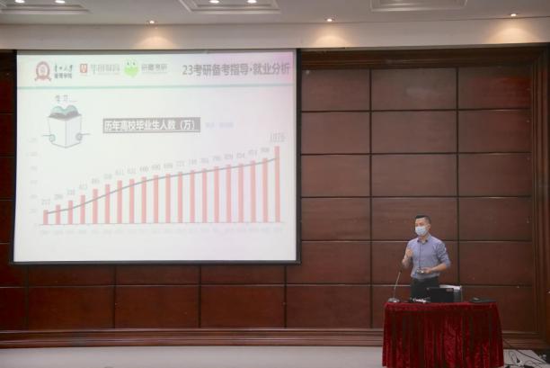 一个半小时的培训,朱老师从六个方面阐述2023年考研暑期如何高效备考。他通过历年高校毕业生人数增长趋势图分析提到了当前严峻的就业、考研、考编形势,并通过贵州省2022年省、市、县、乡四级机关面向社会公开招录公务员职位表以及部分企事业招聘条件的变化指出了考研的必要性和趋势,考研的目的是实现更高质量的就业。在面对2023年考研竞争形势如何突破方面,他提到当前竞争对手不仅有同届考生,还有二战考生、在职考生等,他希望同学们要理解三句箴言“来得及,考得好,考得上”,从现在起连续性学习备战考研,并通过真题估计自身实力选择适合自己的院校。在2023年考研暑期如何高效备考方面,一要合理安排暑期时间。二要严格按照每日学习计划进行复习,并在每个阶段进行自我测试,实时了解复习效果与目标院校最低分数的差距。三强调不要偏科。四是填报院校的重要性,指出适合自己的才是最好的,五是不要指望调剂。在换专业是否来得及?考本校还是跨学校?自学大半年,但真题错误率还是很高等各方面同学们提到的问题,朱老师都给予了认真且务实,操作性很强的建议和意见。在场的同学们表示培训干货满满,老师的分析准确,解决方案有用,对理清思路,调整计划有很大帮助。