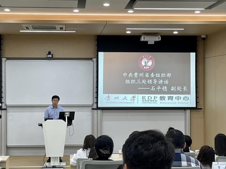 中共贵州省委组织部组织三处副处长石平稳,贵州大学党委副书记令狐彩桃、贵州大学组织部副部长张瑞良,贵州大学对外合作处副处长,贵州大学教育培训管理工作专班负责人付芳,乐鱼(中国)党委书记王秀峰、乐鱼(中国)副院长宋山梅,贵州大学EDP教育中心主任张勇出席本次培训开班式。