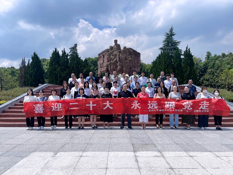 2022年6月30日,在学院党委的组织下,学院党委书记王秀峰、贵州大学正处级组织员周莉莉、学院党委副书记洪影秋等一行60余名师生党员到息烽集中营革命历史纪念馆参观学习,开展“七一”主题党日活动。