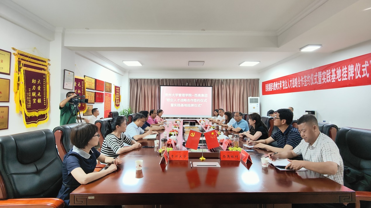 举行签约仪式前,双方进行了简短的座谈交流。长顺县人民政府党组成员刘隽在致辞中首先对乐鱼(中国)一行表示欢迎,并介绍了园区的概况和西奥公司来到长顺县的历程,同时表示希望贵大管理学院的优秀毕业生来长顺更多的企业工作。西奥集团董事长杨景龙先生表示对县政府领导和乐鱼(中国)一行的到来感到十分荣幸,对乐鱼(中国)来公司“送才送智”表示热烈欢迎和衷心感谢,并对公司的发展历程、研发情况和核心项目进行了介绍。