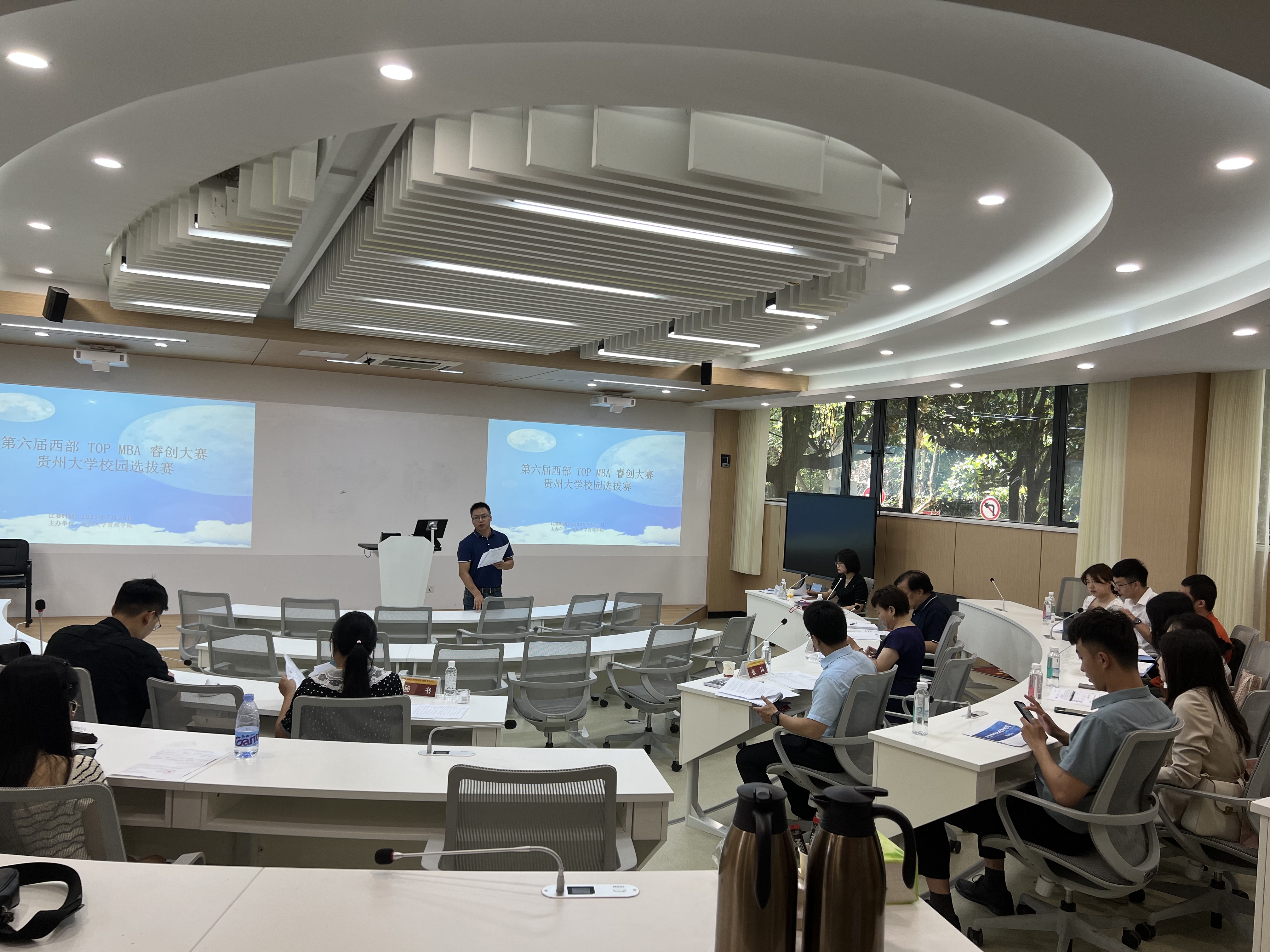 2022年7月16日,第六届西部TOPMBA睿创大赛——贵州大学MBA校园选拔赛在贵州大学东校区致远楼管理学院101教室举行。