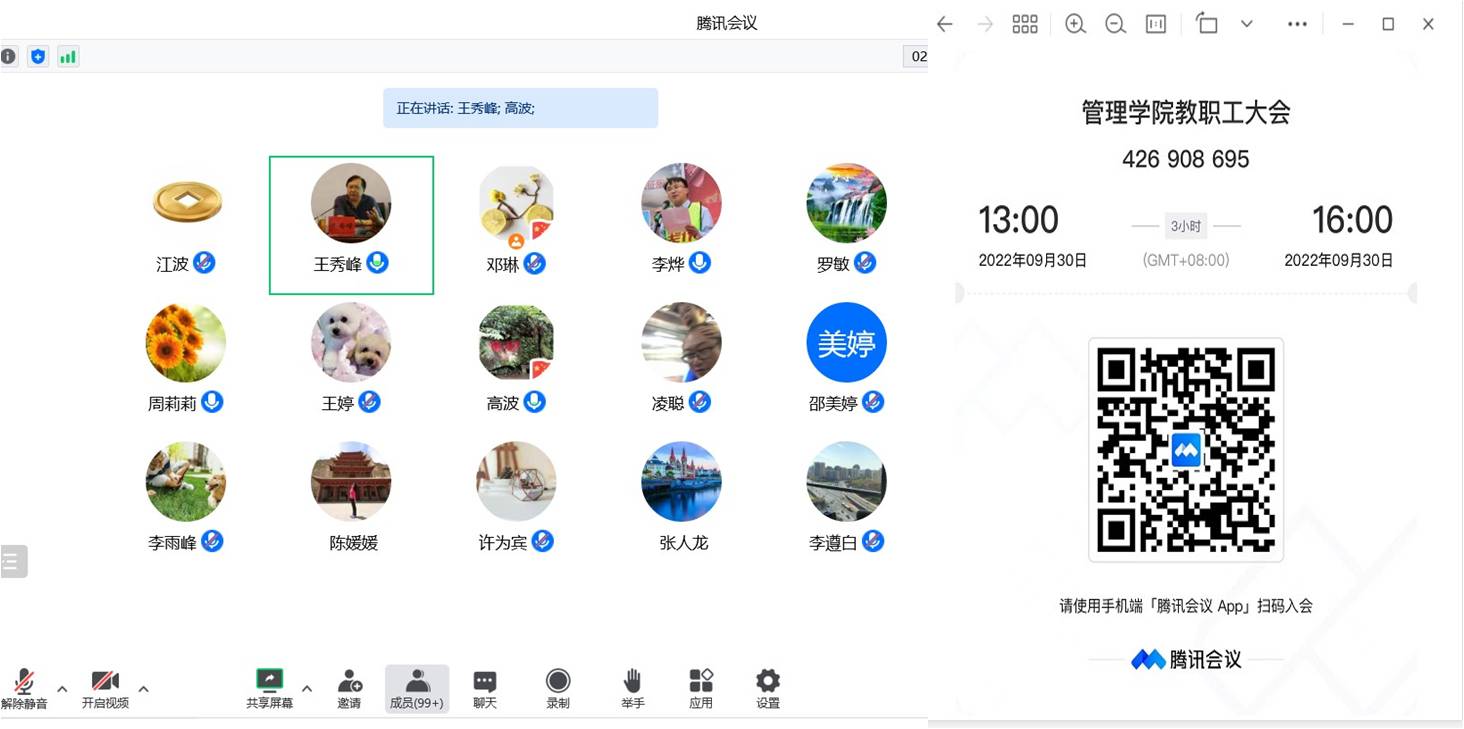 9月30日中午,学院召开全体教职工大会,大会于腾讯会议线上平台举行,学院领导班子及全体教职工参会,会议由学院院长李烨教授主持。