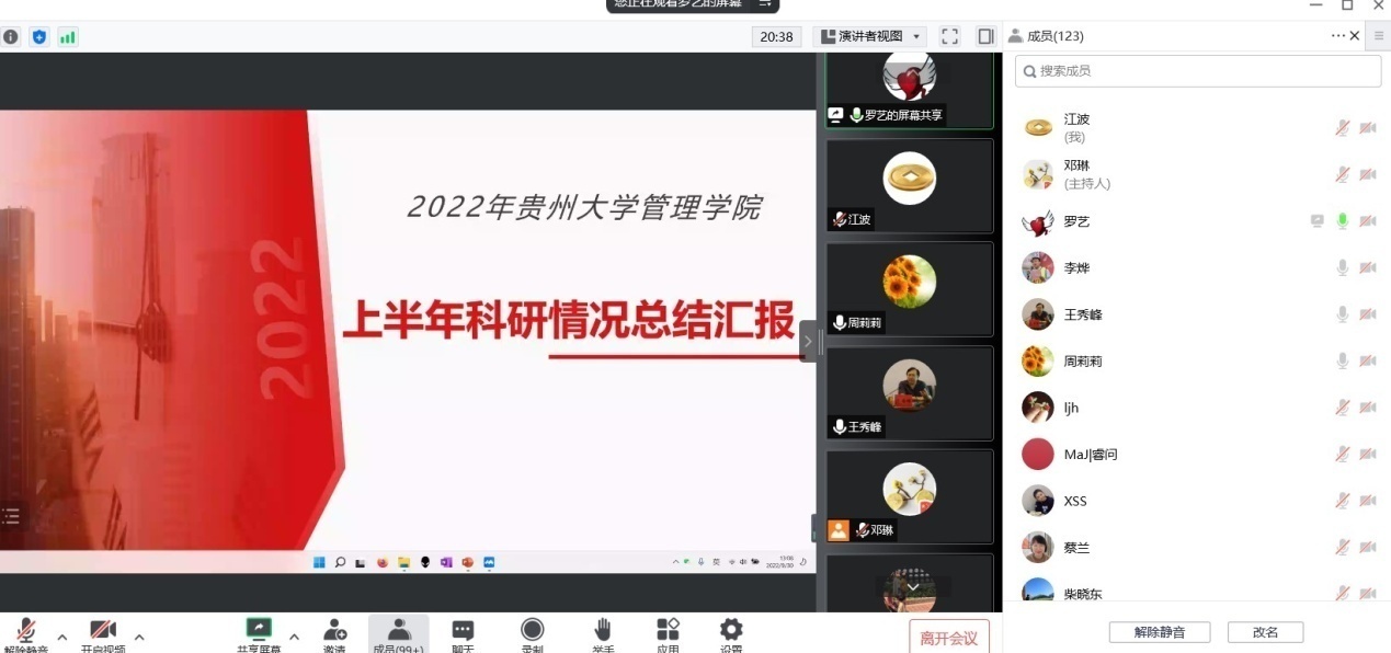 院学科办作上半年学院科研工作总结汇报,从科研项目、论文发表和服务社会作等方面了介绍。副院长罗敏作补充,他指出,上半年学院科研工作成绩喜人,国家基金立项获批创新高,超额完成学校年初下达的项目科研任务,标志着乐鱼手机网页版登录入口科研创新能力进一步提升。同时,他还对下半年学院科研工作计划作了详细介绍,号召广大教师积极做好新一轮国家基金等项目的申报工作。