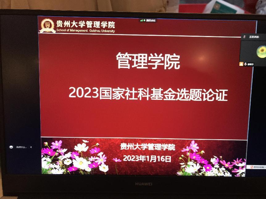 2023年1月16日上午9点乐鱼手机网页版登录入口在腾讯会议召开了管理学院2023年国家社科基金申报第二次选题论证会,会议由副院长罗敏主持。会议邀请了李景勃教授、周乐欣教授、安世遨教授作为论证专家对乐鱼手机网页版登录入口申报2023年国家社科基金的10位老师的选题进行了论证交流。管理学院院长李烨教授作为学院主要领导和论证专家参加了此次会议。