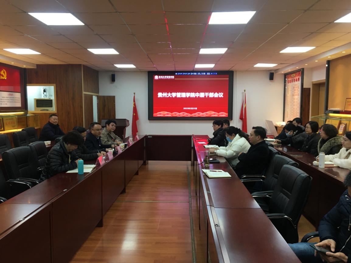 2023年2月23日上午10:30,管理学院在致远楼陈列室召开中层干部会议,学院党政领导班子成员,中层以上干部参加了会议。会议由院长李烨主持。