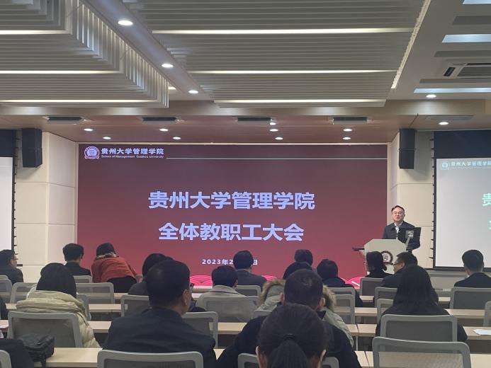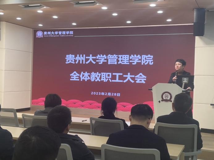 2月28日,开学之际,管理学院在三楼报告厅召开全体教职工大会暨2023年春季学期工作会议。学院党政领导班子成员、全体教职工参加了此次会议。会议由学院院长李烨主持。