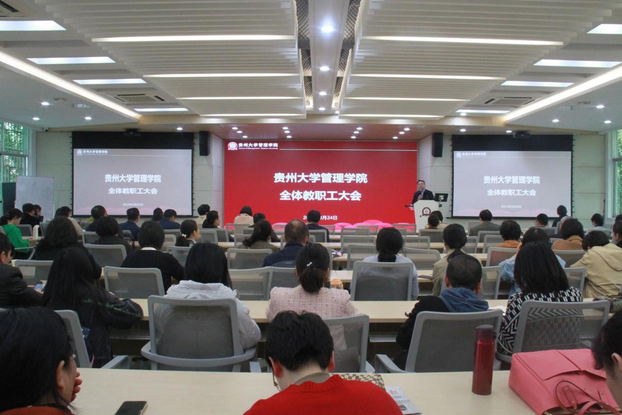 2023年3月24日中午13:00,在致远楼三楼报告厅召开学院全体教职工大会暨政治学习。院领导班子出席会议,全体教职工参加会议,会议由院长李烨教授主持。