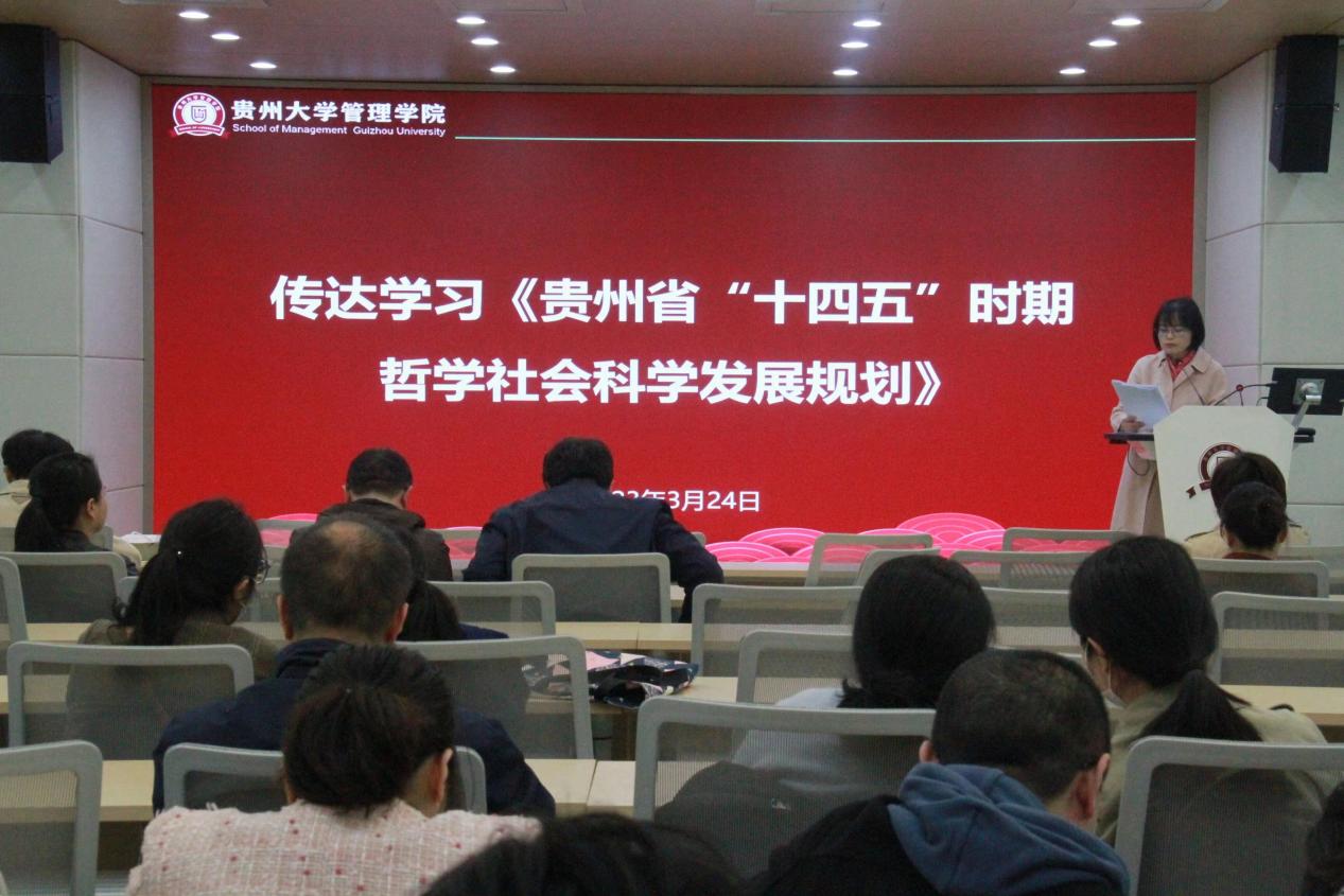 接着,王婷副院长传达了《贵州省”十四五”时期哲学社会科学发展规划》精神。她重点强调:“要强化思想理论武装,培养多彩贵州学术平台。”此外,她还详细解读了“职称评审业绩学术成果相关要求和相关政策通知”,讲解其中关于论文发表和在数字化系统中评审职称的相关要求。