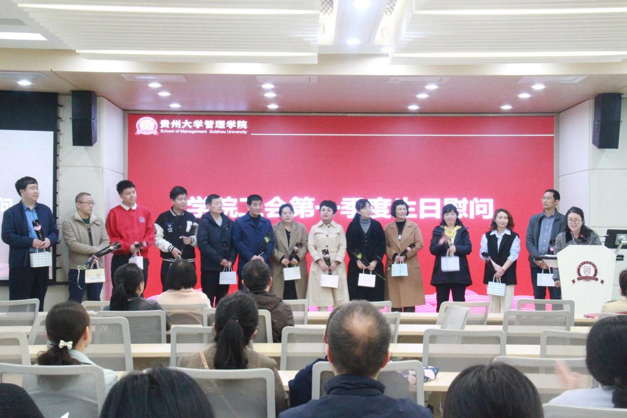 随后,管理学院党委副书记邓琳代表学院分工会向学院第一季度过生日的教职工送上生日慰问祝福及生日小礼物。她表示,学院分工会将会努力建成各位老师最温馨的家,同时学院分工会会积极努力为学院教职工排忧解难,把关心和温暖送到每位教职工身边,也希望与大家一同为管理学院的高质量发展献出自己的一份力量。