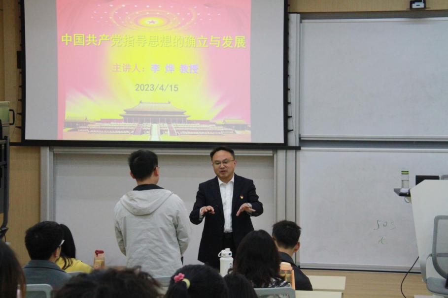 2023年4月15日上午8:00, 乐鱼(中国)院长李烨教授在管理学院102教室为学院第三十八期入党积极分子培训班授课,课程主要围绕“中国共产党指导思想的确立与发展”展开。