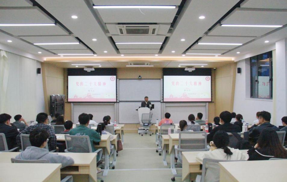 2023年4月16日19:00,管理学院在致远楼102教室开展主题为“党的二十大精神”的专题党课,由贵州大学党委副书记骆长江同志主讲,管理学院第三十八期入党积极分子参加此次党课。