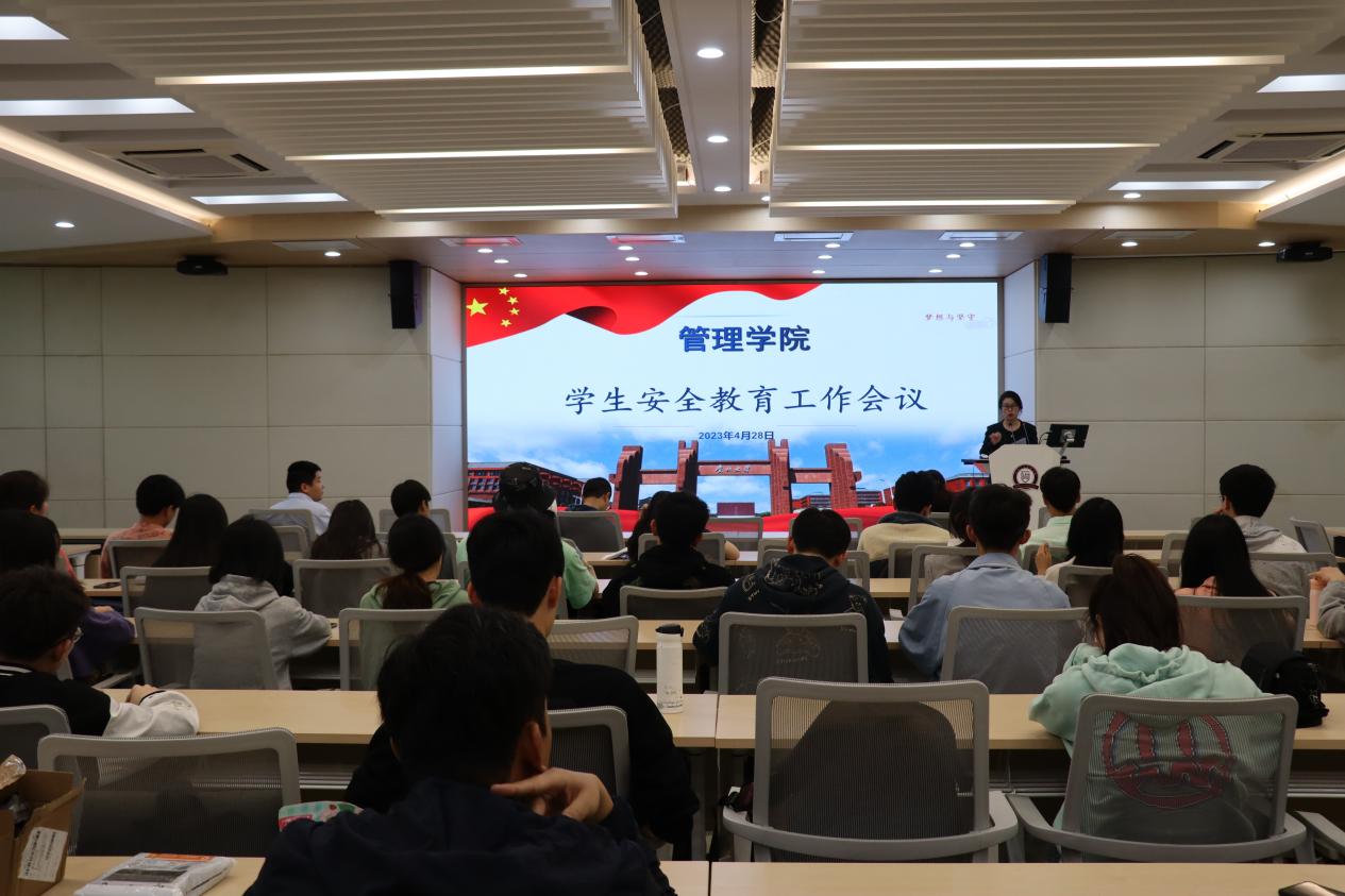4月28日中午1点,在致远楼三楼报告厅召开了管理学院学生安全教育工作会议,会议由管理学院党委副书记邓琳主持,19级、20级、21级学生干部、寝室长及研究生代表参加会议。