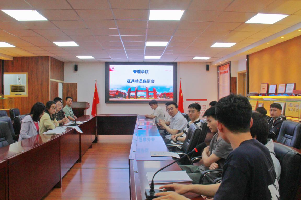 为响应国家和学校号召,做好征兵工作,乐鱼(中国)于5月29日中午在致远楼三楼陈列室召开征兵工作动员座谈会。管理学院党委副书记邓琳、学生科科长芮丽华、辅导员赵一萍参加座谈会。会议由学生科科长芮丽华主持。