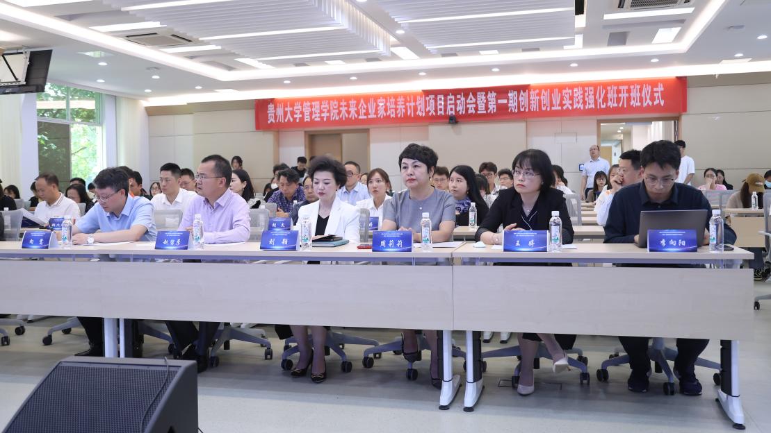 5月18日下午,乐鱼(中国)未来企业家培养计划项目启动会暨第一期创新创业实践强化班开班仪式在三楼报告厅举行。贵州大学党委常委、副校长赵留彦,贵州大学对外合作处处长刘颖,贵州大学教务处处长向嵩,贵州大学校团委副书记杨晓椿,贵州大学科技园副主任李向阳,贵州大学党委委员、管理学院院长李烨,贵州大学正处级组织员、管理学院党委副书记(主持党委工作)周莉莉,管理学院副院长王婷,管理学院副院长李本光,管理学院副院长宋山梅,管理学院党委副书记邓琳出席会议。出席会议的还有校内外“双创”导师及校友企业家。管理学院各科室、各系、各中心部门老师代表及第一期创新创业实践强化班学员参加仪式。