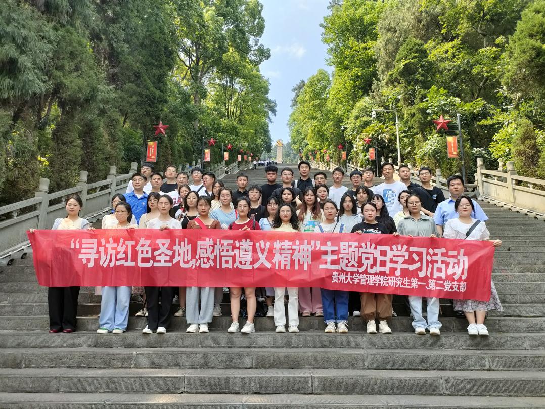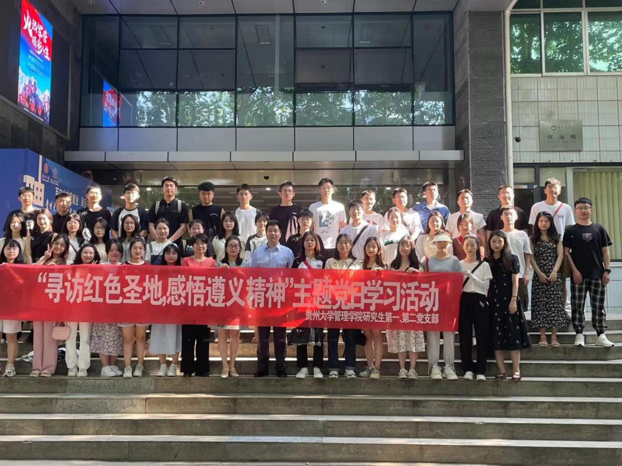 深入学习贯彻习近平总书记在“学习贯彻习近平新时代中国特色社会主义思想主题教育工作会议”中的重要讲话精神,牢牢把握“学思想、强党性、重实践、建新功”的总要求,2023年5月31日,在学院党委的组织下,乐鱼(中国)研究生第一、第二党支部赴遵义市开展了“学习贯彻习近平新时代中国特色社会主义思想主题教育暨‘寻访红色圣地 感悟遵义精神’”主题党日学习活动,通过对革命先烈的缅怀,了解革命先辈们浴血奋斗的感人事迹,接受革命精神的洗礼、传承红色基因、厚植红色文化,进一步提高研究生党员的爱国热情,将“不怕苦不怕累,敢为天下先”的伟大革命精神发扬传承下去。