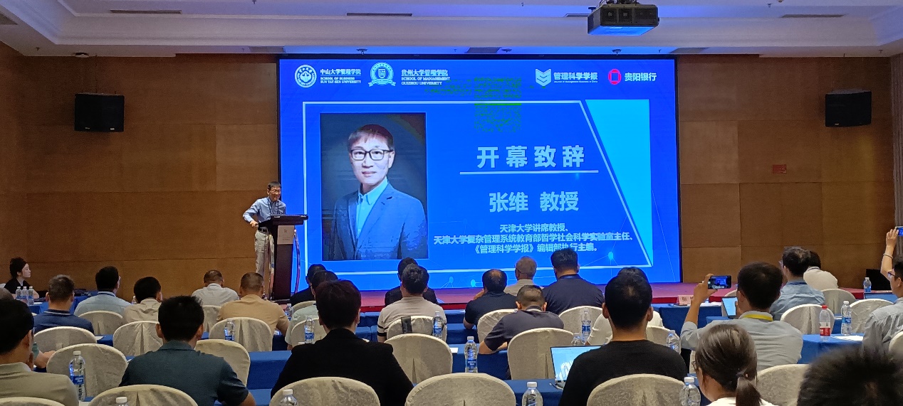 《管理科学学报》执行主编、天津大学张维教授代表协办方致辞。张维主编就工作坊的基本情况及《管理科学学报》创办的重要使命作了介绍与解读,并表示,希望各位学者与业界代表的交流中碰撞出新的火花,建立更深厚的学术氛围与友谊,最后,他对本次会议的承办方表示了由衷地感谢。