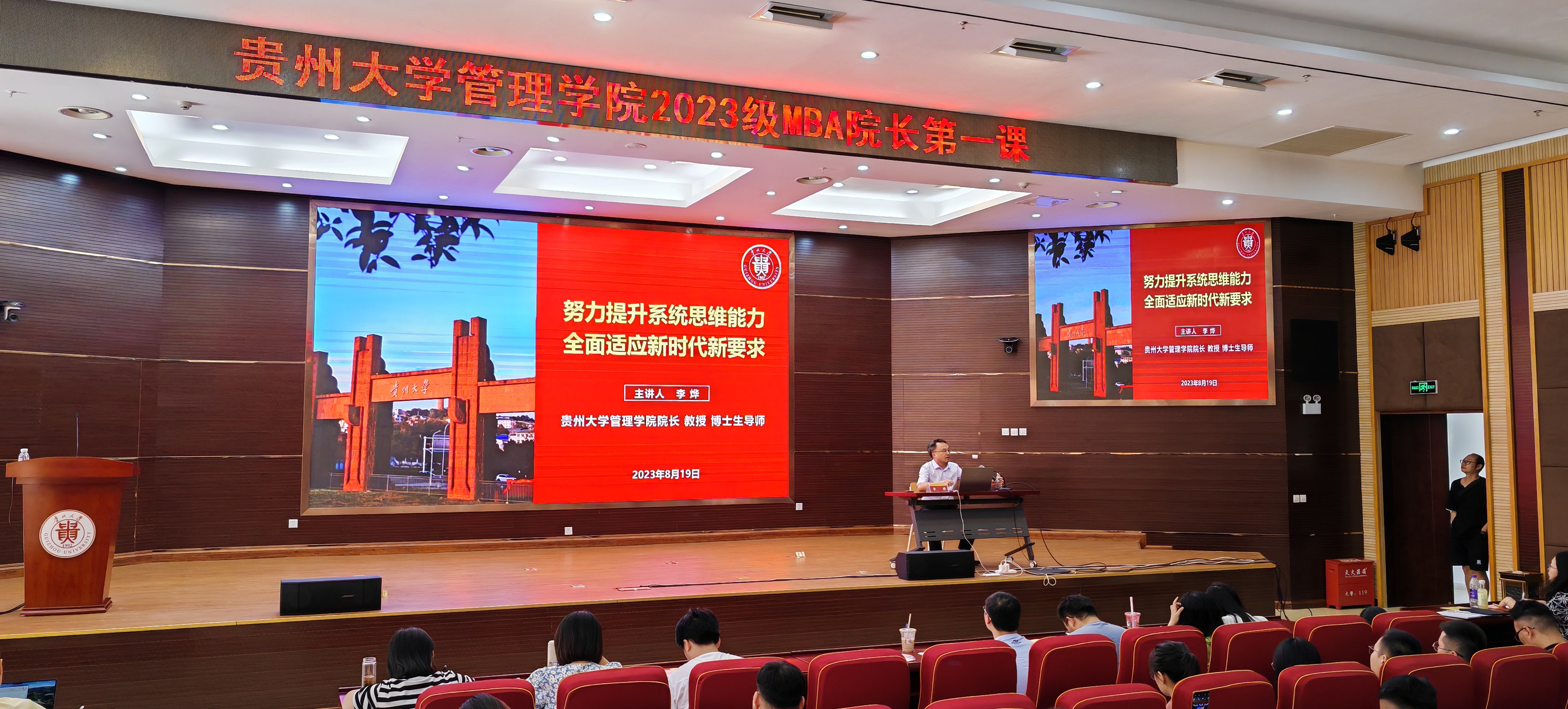 2023年8月19日下午,贵州大学党委正处级组织员、管理学院党委副书记(主持党委工作)周莉莉教授为2023级MBA新生开启了书记第一课。周书记为新生详细介绍了贵州大学校史、管理学院发展史、MBA中心的发展历程及现状。