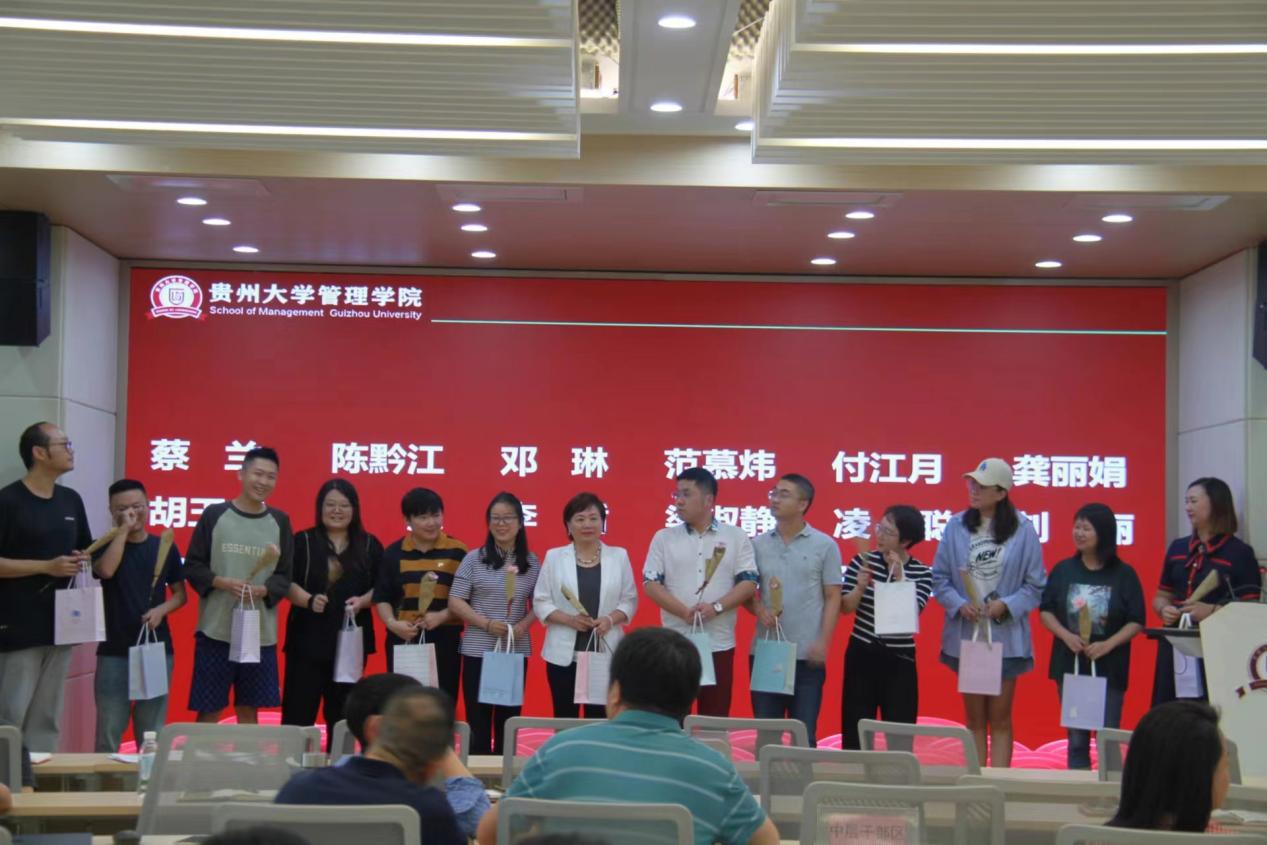会议开始,李烨院长代表管理学院向新入职学院的刘兴芬、钟健两位博士表示热烈欢迎,校党委正处级组织员、院党委副书记(主持党委工作)周莉莉上台为其佩戴校徽以示欢迎并合影留念。随后,管理学院分工会为第三季度生日的老师送上了生日小礼品与祝福,表达学院对老师们的关怀。
