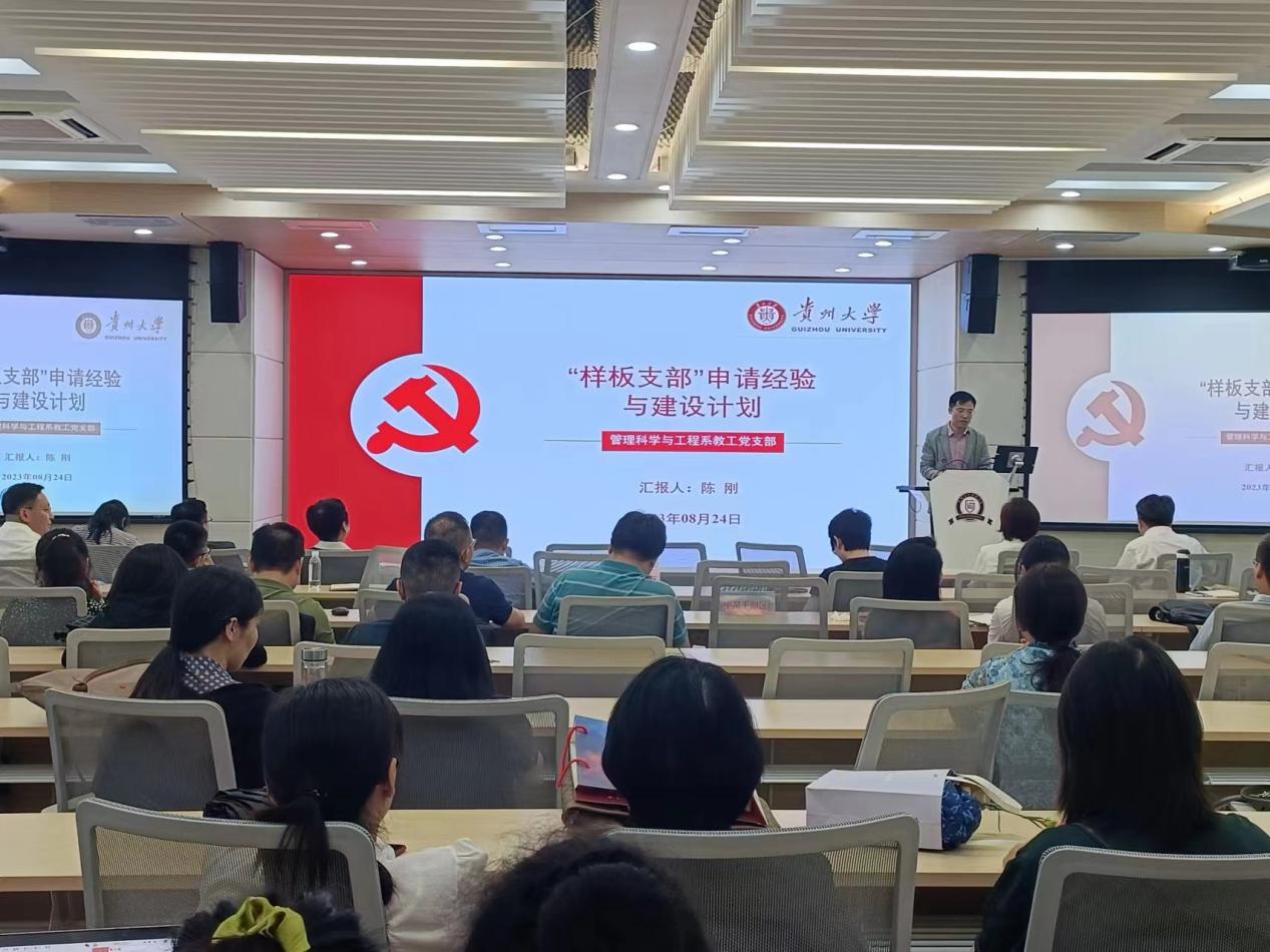 管理科学与工程系主任王美强、工商管理系主任许为宾就工程管理专业、工商管理学科建设情况作了汇报,对学科、专业取得的成绩、存在的问题和未来的计划等方面进行介绍。管理科学与工程系教工党支部书记陈刚从党支部基本情况、工作基础和建设计划几个方面介绍了“样板支部”申请经验与建设计划。