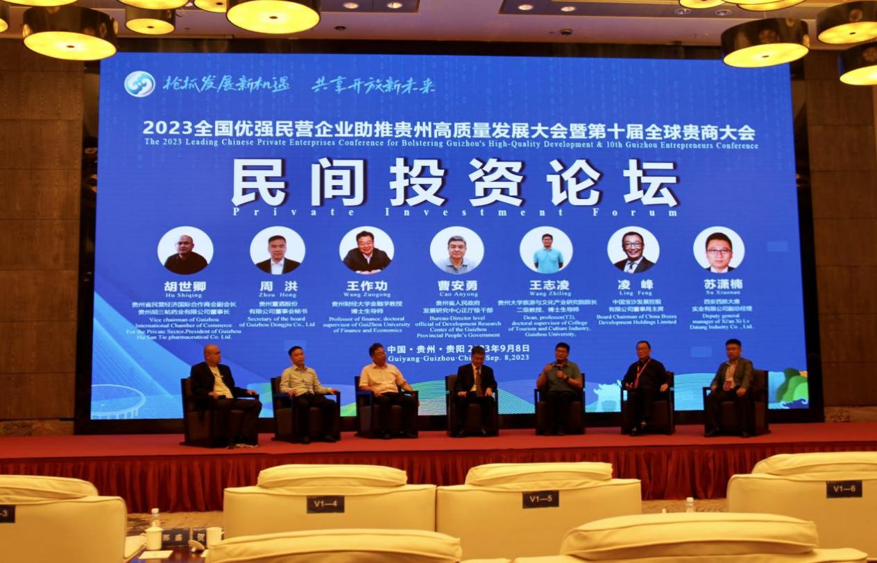 随后的嘉宾对话环节,贵州大学旅游与文化产业发展研究院院长王志凌、贵州财经大学金融学教授王作功、中国宝沙发展控股有限公司董事局主席凌峰、贵州董酒股份有限公司董事会秘书周洪、西安西旅大唐实业有限公司副总经理苏潇楠、贵州省民营经济国际合作商会副会长胡世卿等嘉宾,围绕如何在全球化背景下发挥国际合作与交流对民间投资的推动作用展开了讨论。他们还深入探讨了民间投资在民营经济的区域合作中的重要意义以及投资领域的选择和方向的研判。紧接着,来自学界和商界的多位嘉宾就国际合作与交流推动民间投资、民间投资与民营经济的区域合作、民间投资的方向与领域分析、民间投资与金融的深度融合、进一步完善法律法规促进并扩大民间投资以及民间投资与实体经济的融合发展这六个议题进行了深入讨论。他们全面探讨了民间投资在实现经济增长和共同发展方面的重要性,并强调了进一步加强国际合作、区域合作以及法规改革的必要性。