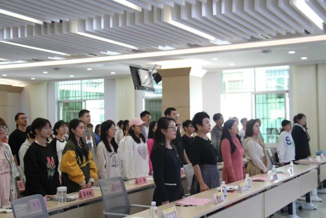 典礼第一项:全体起立奏唱中华人民共和国国歌。回顾往昔峥嵘岁月,中国共产党克服重重困难从小到大、从弱到强,不断发展壮大,无数共产党员为了革命事业不惜牺牲生命。我们要继承前辈的优良品质,坚决拥护中国共产党的领导,贯彻群众路线、群众方针,切实为人民服务,以广大人民利益为重。在奏唱国歌中,全体学员更加坚定了志愿加入中国共产党的决心,继续书写中国共产党的奋斗史、光荣史。