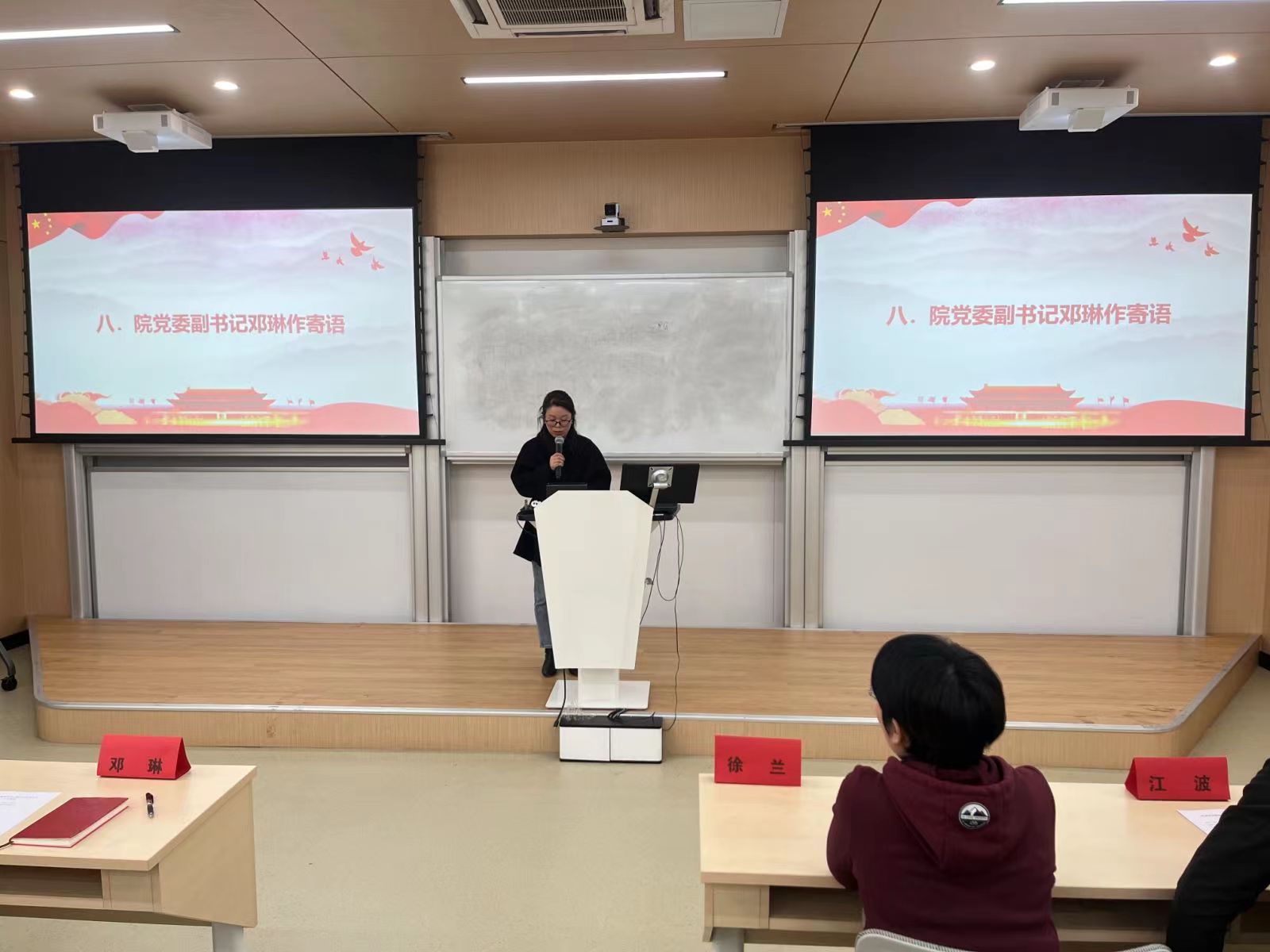 会议最后,院党委副书记邓琳为融媒体中心寄语。邓琳副书记对融媒体中心全体成员过去一年的付出表示了肯定和感谢,她强调了融媒体工作的重要性,并希望融媒体中心全体成员,能够不忘初心,砥砺前行;注重团队合作和协作精神;保持良好的职业道德和媒体伦理,凝聚共识,共同努力,不断追求卓越。
