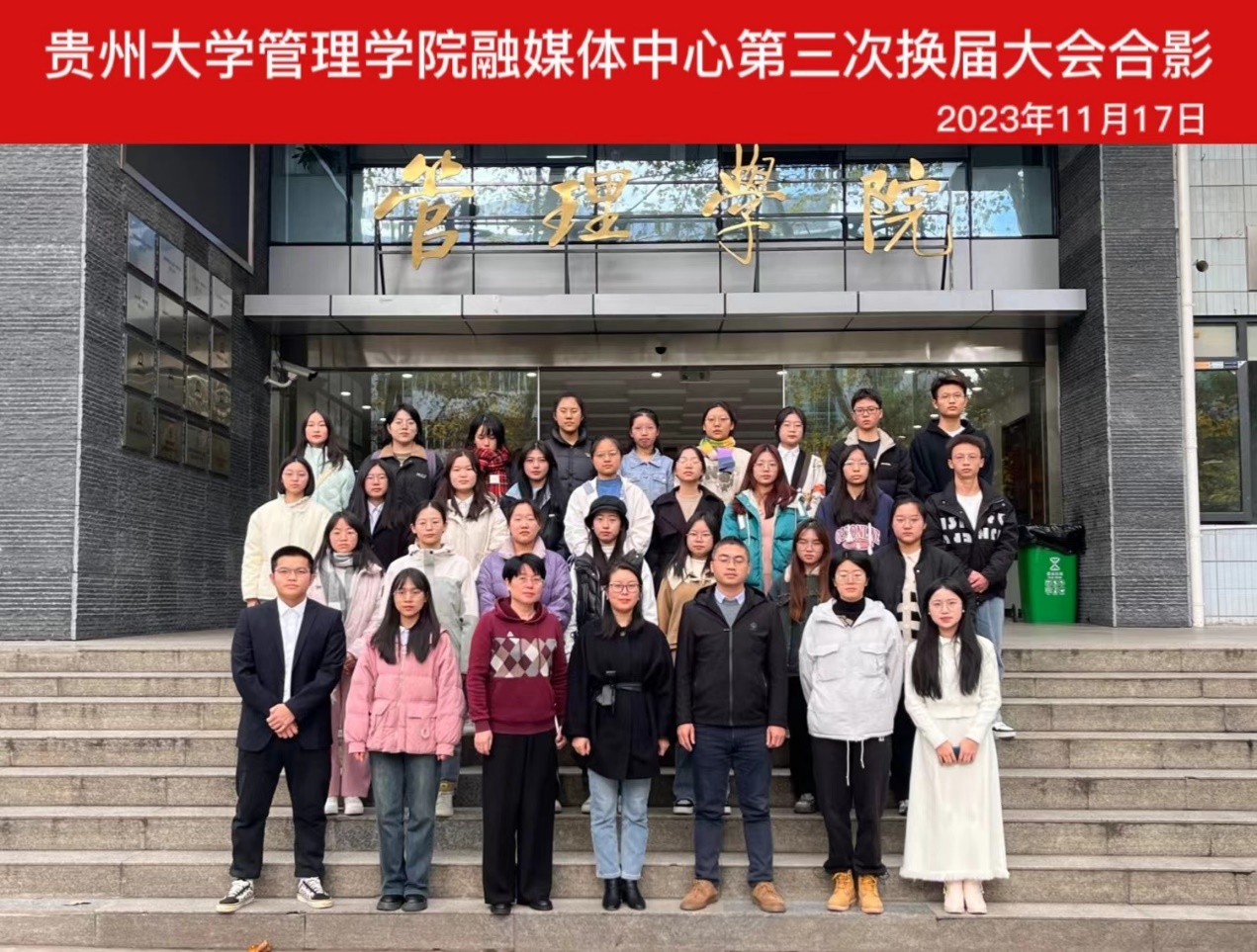 2023年11月17日下午,乐鱼(中国)融媒体中心第三次换届大会于管理学院102教室顺利召开。管理学院党委副书记邓琳、党政办公室主任徐兰、副主任江波、团委负责人车婧娴及融媒体中心新老成员参加此次会议,会议由融媒体中心成员何单主持。