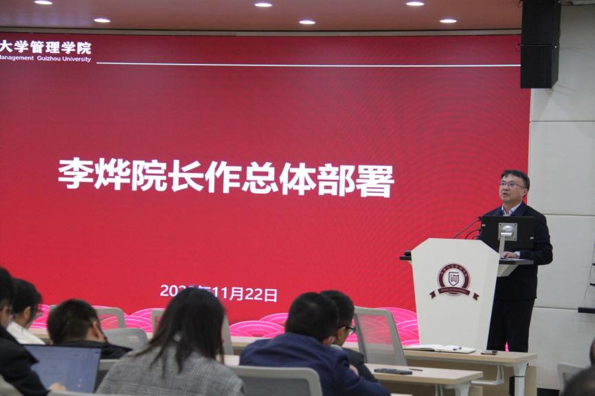 各分管领导分别就近期工作进行了通报和部署。院党委副书记、纪委书记邓琳通报了安全问题、就业工作(年终就业率)、博学计划推进情况、团委、党风廉政教育以及工会工作情况,并就接下来的相关工作作了部署安排。副院长李本光就高质量考核、财政资金使用问题、国家基金项目申报以及期末考试工作安排作通报和部署,并对在教学创新大赛中获奖,顺利进入省赛老师表示祝贺和勉励。副院长王婷通报了2023年管理科学与工程一级学科博士授权点核验评估情况,并对下一步工商管理一级学科硕士点的核验评估工作作了部署安排。