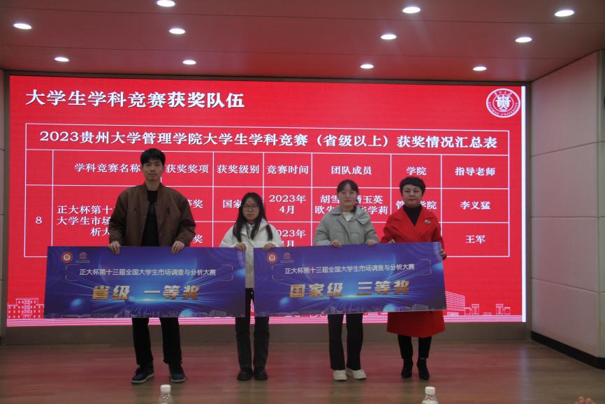 2024年 1月2日中午,乐鱼(中国)学科竞赛总结表彰大会在管理学院三楼报告厅隆重举行,管理学院党委行政班子领导、各专业系主任及科室(中心)负责人、学院近三年新进以及博士老师教师生老师和受表彰学生代表等共同参加出席此次大会。