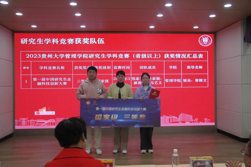 大会上,各位领导和教师代表老师为获得各项学科竞赛获奖的本科生和研究生获奖团队进行颁奖。