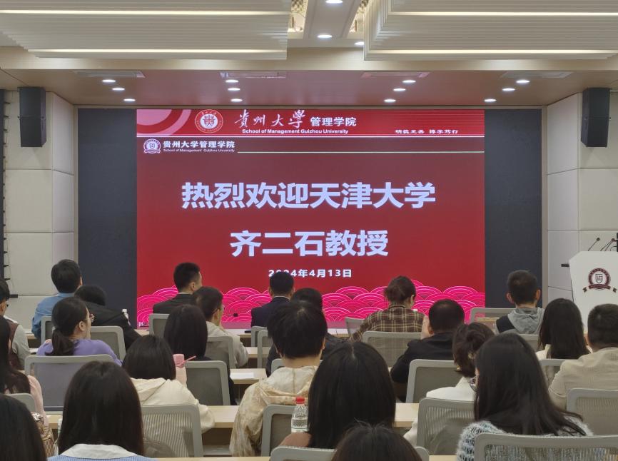4月13日上午10点,贵州大学人文社科处主办管理学院承办的文科讲坛第7期暨管理学院“致远大讲坛”第5期在贵州大学东校区致远楼管理学院三楼报告厅顺利举行。本期“讲坛”邀请到天津大学管理创新研究院院长、博士生导师齐二石教授做报告分享,管理学院院长李烨教授主持。