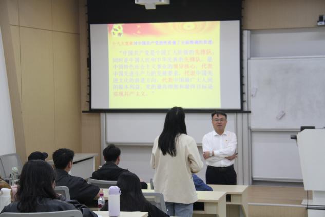 随后,李烨教授向同学们讲授了中国共产党的性质,党的指导思想:马克思列宁主义、毛泽东思想、邓小平理论、“三个代表”重要思想、科学发展观、习近平新时代中国特色社会主义思想的创立背景和过程、内涵要义和核心内容,分析了其中的思想继承和理论创新,并强调作为新时代青年,同学们要积极深入学习党的指导思想和方针政策,感悟体会党和国家的伟大与不易。