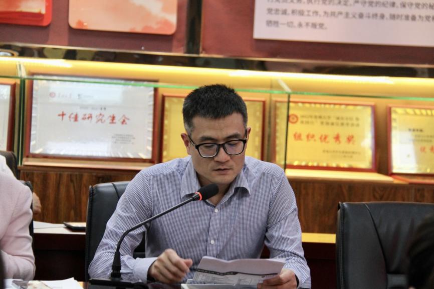 校党委正处级组织员、院党委副书记(主持党委工作)周莉莉从政治建设、思想建设、组织建设、作风建设、纪律建设以及党史学习教育等方面作了学院今年党建工作具体要求。她强调,各支部要严格按照学校要求开展好“三会一课”、党员发展等工作。同时,周莉莉书记指出要做好管理科学与工程的“样板支部”的相关考核准备工作,并鼓励各支部积极申报“样板党支部”。
