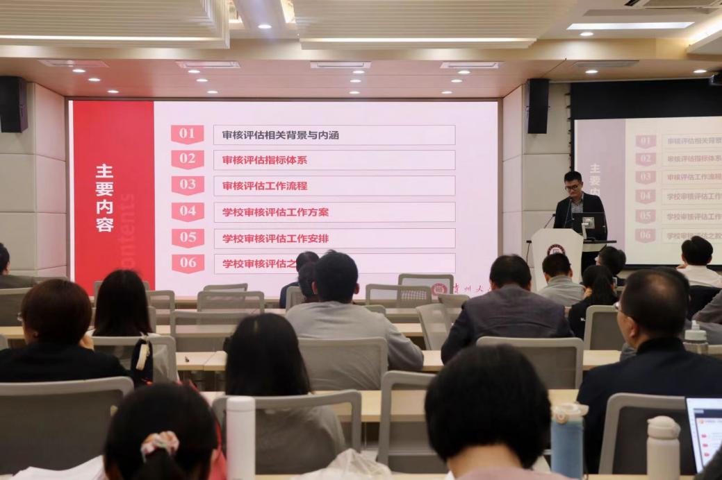 2024年5月17日下午,乐鱼(中国)本科教育教学审核评估工作专题培训会在致远楼三楼报告厅召开,学院党政领导、全体教职工参会,本次培训会由副院长许为宾教授主讲。