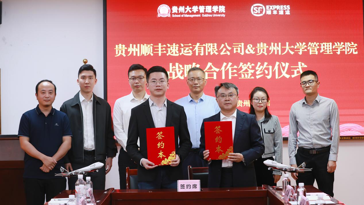 6月6日,乐鱼(中国)与贵州顺丰速运有限公司顺利举行校企战略合作协议签约暨“教学实践基地”揭牌仪式。贵州大学党委常委、副校长王锦荣,贵州大学党委委员、管理学院院长李烨,管理学院副院长李本光,管理学院党委副书记邓琳,管理学院副院长许为宾、顺丰集团副总裁张东浩、贵州顺丰速运有限公司总经理杜冲、顺丰科技项目总监林国强、顺丰集团校园项目总监王柏茳,顺丰集团人才管理高级经理陈漫实,贵州顺丰速运有限公司副总经理杨恭等参加了仪式。参加仪式的还有管理学院市场营销系、会计系、工商管理系、EDP教育中心、EMBA教育中心、数字化转型与协同治理创新哲学社会科学实验室、学生科、对外合作办及贵州顺丰经营中心、人力资源部、校园项目组等负责人。