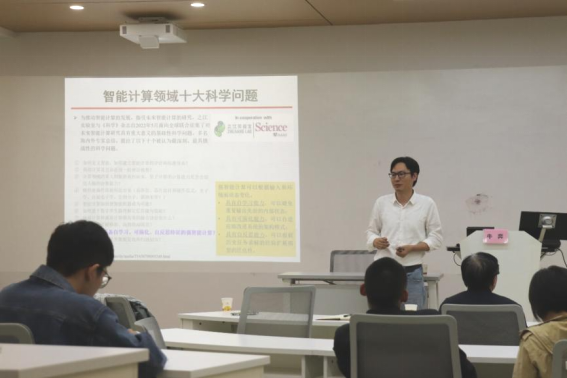 讲座第一项,人工智能与智能计算。首先,牛奔教授介绍了AI的发展历程,由规则驱动的确定性智能,到数据驱动的不稳定性智能,再到如今交互驱动的群体智能,AI共经历了三个发展阶段。随后,牛奔教授讲述了智能计算的相关概念和发展历程,1950年-1969年是起步阶段,1970年-1989年是发展阶段,1990年之后,是继续发展阶段,他还讲述了智能计算领域十大科学问题,其中,他就“能否实现具备自学习、可演化、自反思特征的强智能计算?”进行了重点讲解。