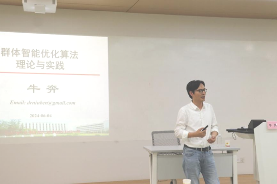 2024年6月4日,管理学院学术讲座在致远楼101教室顺利开展,本次讲座邀请到了深圳大学管理学院副院长、教育部工业工程专业教指委委员、中国机械工程学会高级会员、深圳医院管理者协会副会长牛奔教授担任主讲人,报告题目为“群体智能优化算法:理论与实践”,管理学院副院长李本光教授主持此次讲座。