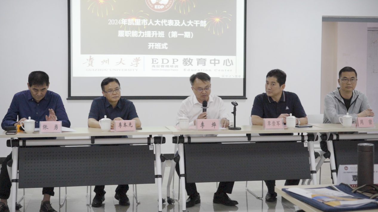 贵州大学党委委员、管理学院院长李烨,管理学院副院长李本光,管理学院EDP教育中心主任张勇,凯里市人大常委会副主任覃崇军,凯里市人大常委会四级调研员周密出席了本次开班仪式。