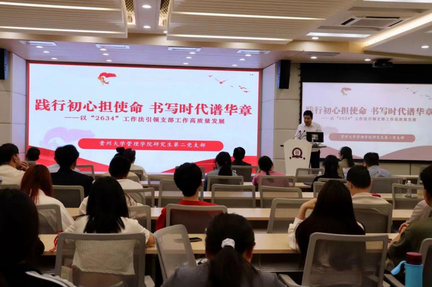 会议第二项,贵州大学党委委员、管理学院院长李烨宣读表彰决定。他指出,表彰先进是为了更好地激全体党员干部奋发进取,进一步推动学院各项事业高质量发展。他号召全体党员以受到表彰的先进典型为榜样,不忘初心、牢记使命,为推动学院高质量发展作出新的更大贡献。这些先进个人中,不仅有辛勤耕耘在教育一线的党员老师,更有许多活跃在学院各个角落的党员同学。他们在推动学院高质量发展、传播“管院好声音”等方面,发挥了重要作用,为全体党员树立了榜样。