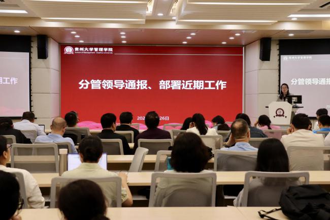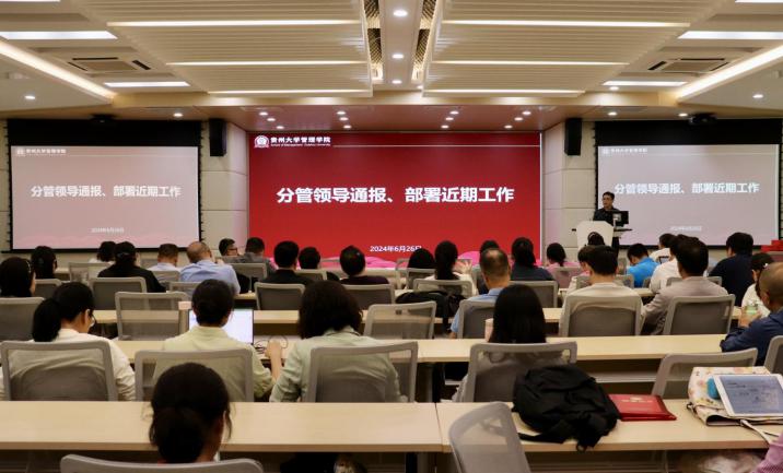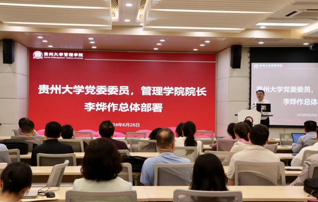 会议第三项,贵州大学党委委员、管理学院院长李烨作总体部署。李烨院长肯定了学院今年以来在科研、教学、学科建设等方面取得的成绩,也指出存在的问题。他指出,下一步,学院要从推进科研项目、优化课程体系、加强国际合作、引进高端人才、加强党的建设、落实党风廉政建设、强化学生思想政治教育和就业服务、改善办学条件等方面继续发力,推动学院高质量内涵式发展,推进学院各项事业迈上新台阶。