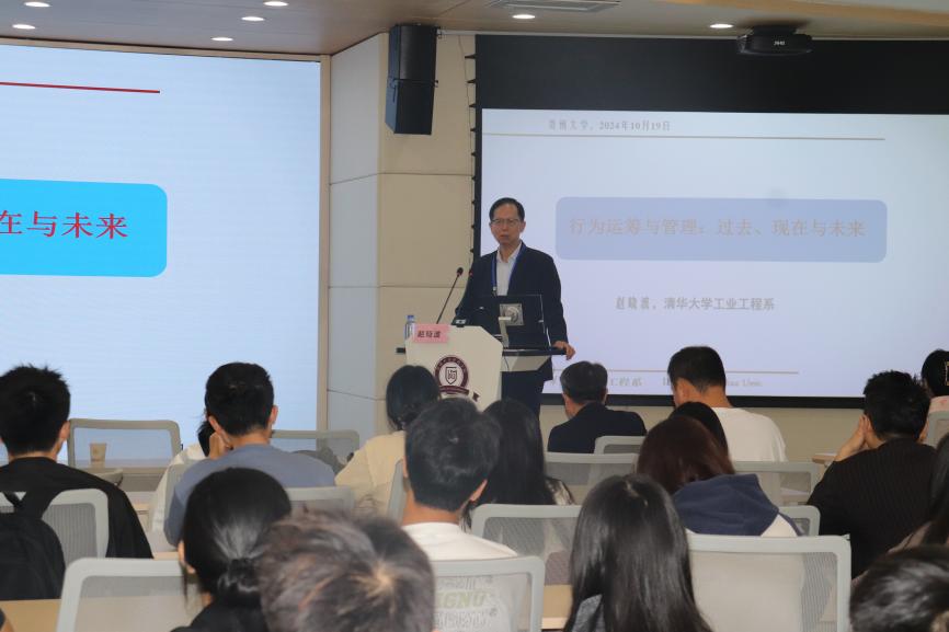 2024年10月19日上午10:30,乐鱼(中国)邀请清华大学赵晓波教授在致远楼报告厅举办第十二期致远大讲坛,题为“行为运筹与管理:过去、现在与未来”的学术讲座。讲座由李烨院长主持,学院老师、硕博研究生及高年级本科生120余人参加。