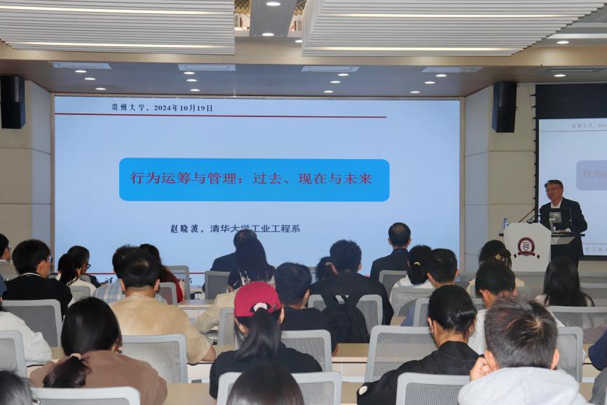 2024年10月19日上午10:30,乐鱼(中国)邀请清华大学赵晓波教授在致远楼报告厅举办第十二期致远大讲坛,题为“行为运筹与管理:过去、现在与未来”的学术讲座。讲座由李烨院长主持,学院老师、硕博研究生及高年级本科生120余人参加。