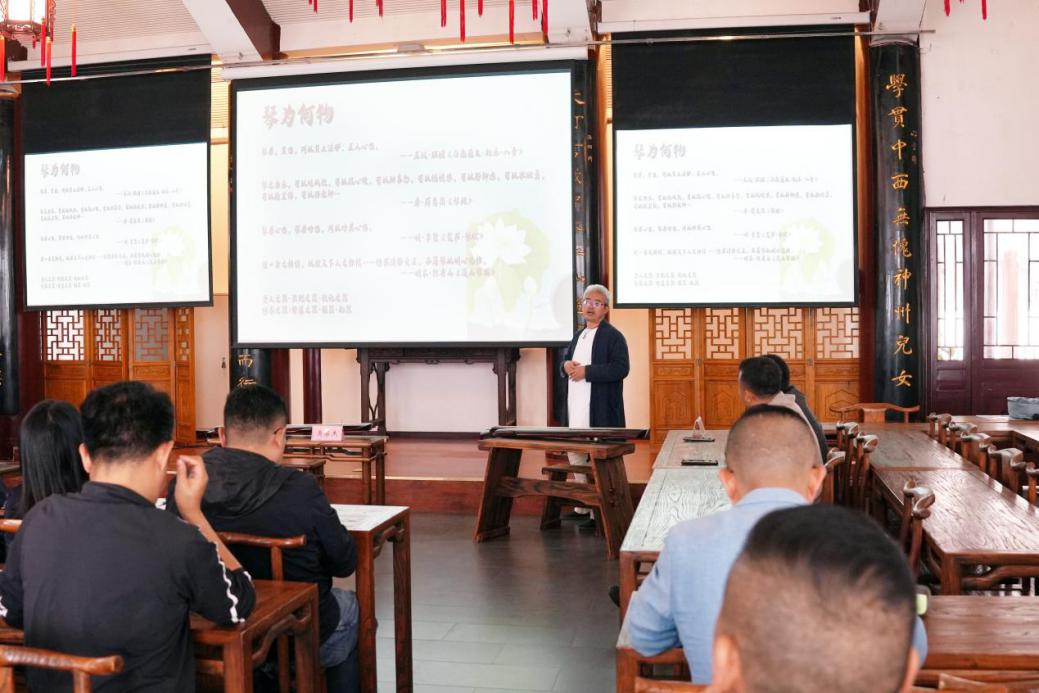 在一天半的课程学习之后,周日下午为学员们安排了人文修养课程,《传统琴乐的禅意之美与养生智慧》,由贵州省古琴学会会长,贵州省古琴专业委员会名誉会长吴若杰老师授课。吴老师为大家带来了古琴文化讲述和名曲赏析,让各位学员在感受传统琴乐的悠远意境中,领悟到禅意的宁静与和谐。通过经典曲目的欣赏与解读,学员们不仅体会到古琴音韵中的身心修养之道,还学到了古琴与养生的智慧结合,为忙碌的学习生活增添了一份雅趣与平和,提升了自身的人文修养与内在平衡。