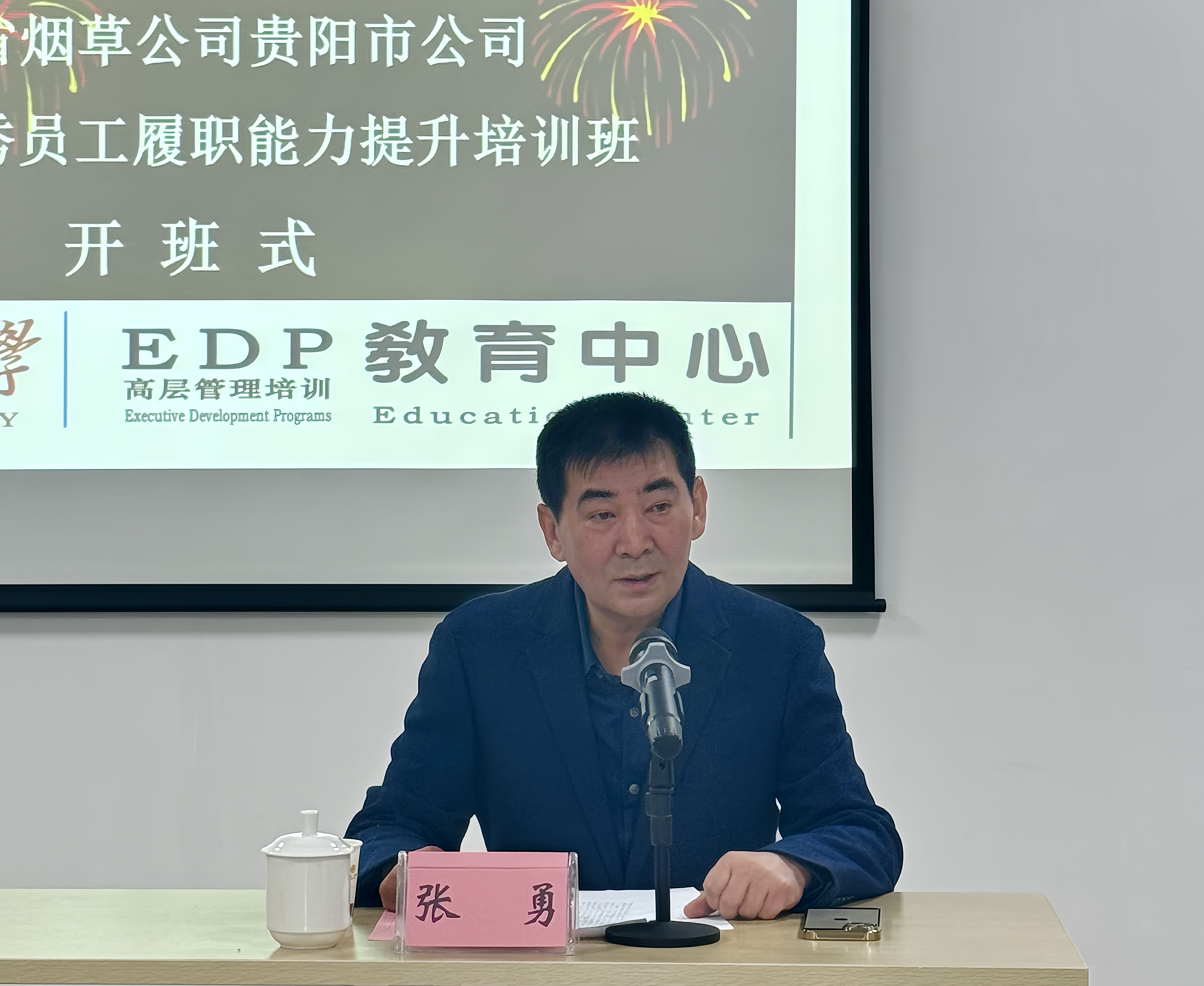 乐鱼(中国)EDP教育中心主任张勇在开班式上,代表中心向贵州省烟草公司贵阳市公司的信任和指导表示衷心的感谢!向各位领导、学员的到来表示热烈的欢迎!希望全体学员提高政治站位,珍惜培训机会,认真参训,进一步坚定理想信念、增强党性修养、提升理论水平,增强履职能力,切实增强责任感、使命感和紧迫感,时刻保持学习的热情和求知的渴望,不断充实自己,提升自己的综合素质和能力水平,为贵州烟草高质量发展和强化烟草行业管理工作贡献力量。
