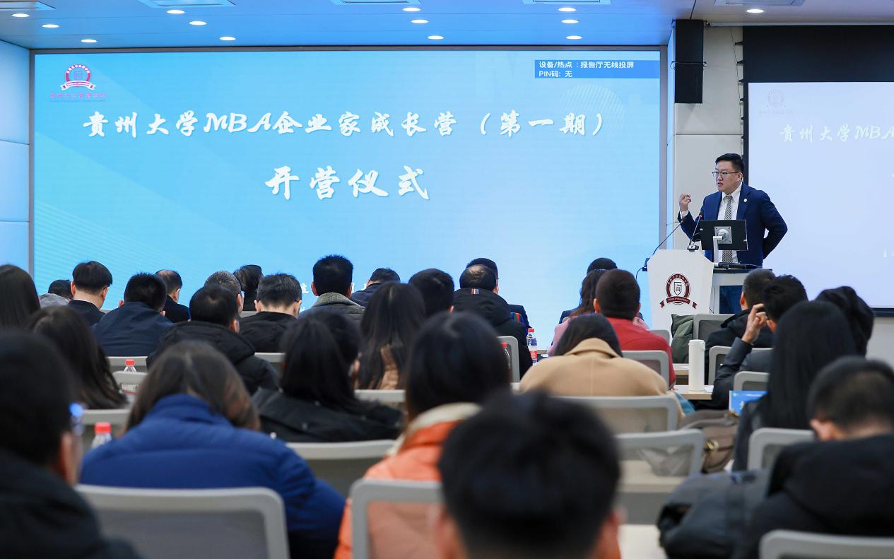 贵州大学MBA企业家成长营旨在突出MBA办学特色,提升教育质量,促进高质量发展,帮助MBA企业家学员拓宽创新思维,激发创业动力,提高创业成功率。此次开营仪式汇聚了众多业界翘楚、专家学者以及怀揣梦想的MBA学员,共同见证这一意义非凡的时刻,开启“新质生产力赋能高质量创新创业”的新篇章。